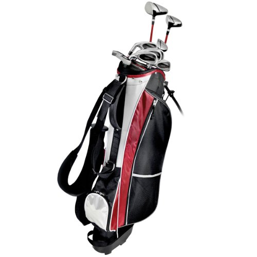High performance 10.5 driver with a graphite shaft. High MOI shape generates longer, straighter drives. Low profile fairway wood and hybrid both feature graphite shafts - a perfect mix of distance and control. 6-PW irons incorporate a low center of gravity shape for better trajectory, superior distance and feel. Perimeter-weighted shape provides a more balanced stroke. Lightweight stand bag features a six compartment, graphite safe top, a large garment pocket, three accessory pockets, a padded shoulder strap and matching head covers for the driver and fairway.